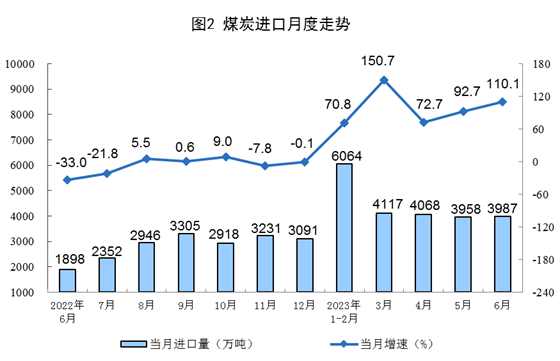 原煤生產(chǎn)穩(wěn)定增長,進口高位增長。上半年,生產(chǎn)原煤23.0億噸,同比增長4.4%。進口煤炭2.2億噸,同比增長93.0%。6月份,生產(chǎn)原煤3.9億噸,同比增長2.5%。